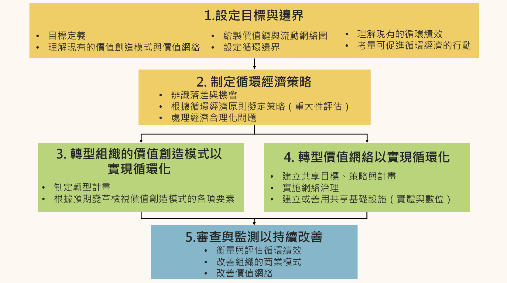 圖3、企業實施循環經濟需遵守之五大步驟(SFIm團隊翻譯彙整)