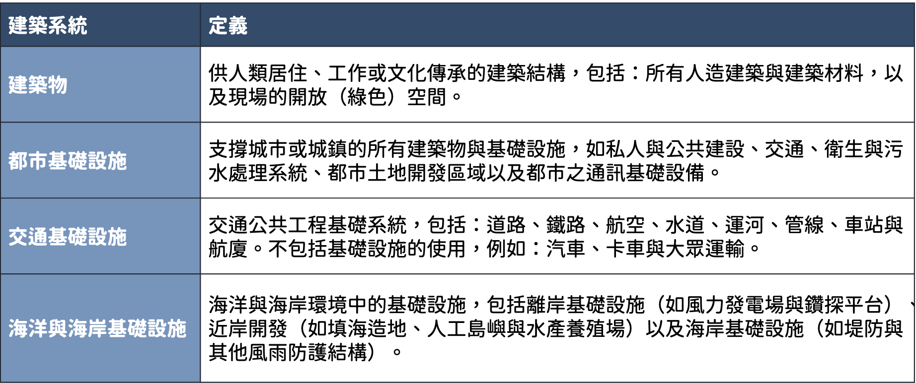 圖2、建築環境系統整理表(圖片來源:TNFD,SFIm團隊翻譯彙整)